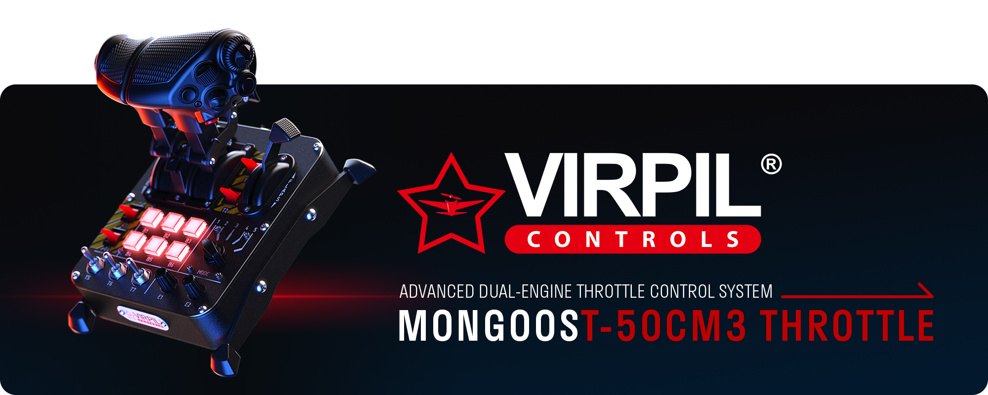 The VPC MongoosT-50CM3 Throttle is recognised as a standard USB input device without requiring additional drivers, and as such is directly compatible with a huge array of USB controller compatible games and flight sims. Take your simulations to the next level with VIRPIL Controls equipment!